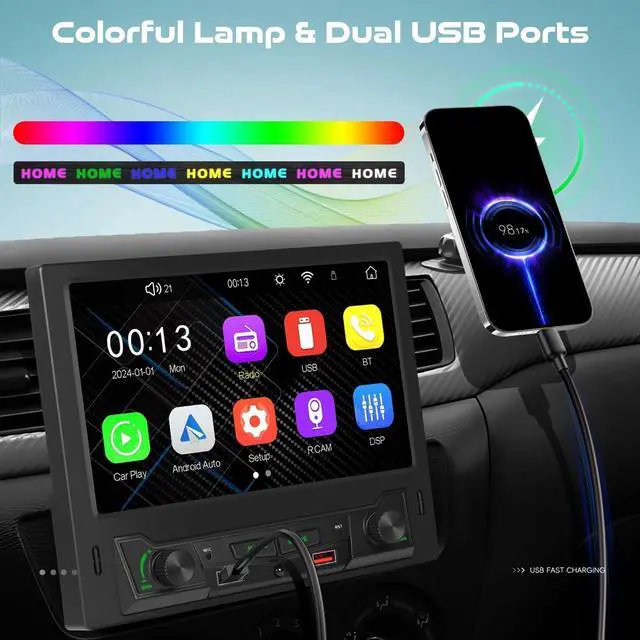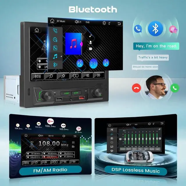 Entertainment Features: The 1 din car stereo Built-in FM/AM radio allows you to tune into your favorite local and national stations for additional entertainment options. The AUX and double USB ports offer multiple ways to connect your devices. DSP (Digital Signal Processing) technology ensures high-quality audio output. ^^ Shared Entertainment and