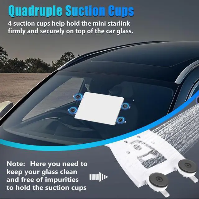 They are designed to be washable and reusable multiple times, ensuring long-lasting adhesion. The cups remain tightly attached in various road conditions, keeping the device firmly in place without easily falling off. ^^ Multi-scene AdaptationThis mount enables secure fixation of the Starlink Mini in outdoor settings, positioning it to better face the sky for improved signal reception. Ideal for car-top use during camping or for enhancing signal coverage around your RV while traveling, ensuring reliable connectivity outdoors. ^^ Easy InstallationDesigned with a precise fit and easily accessible suction cups, installation is straightforward.