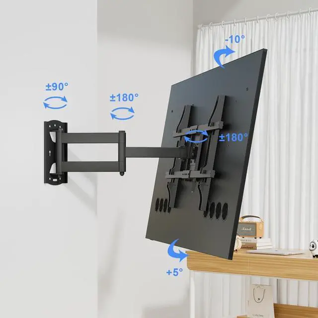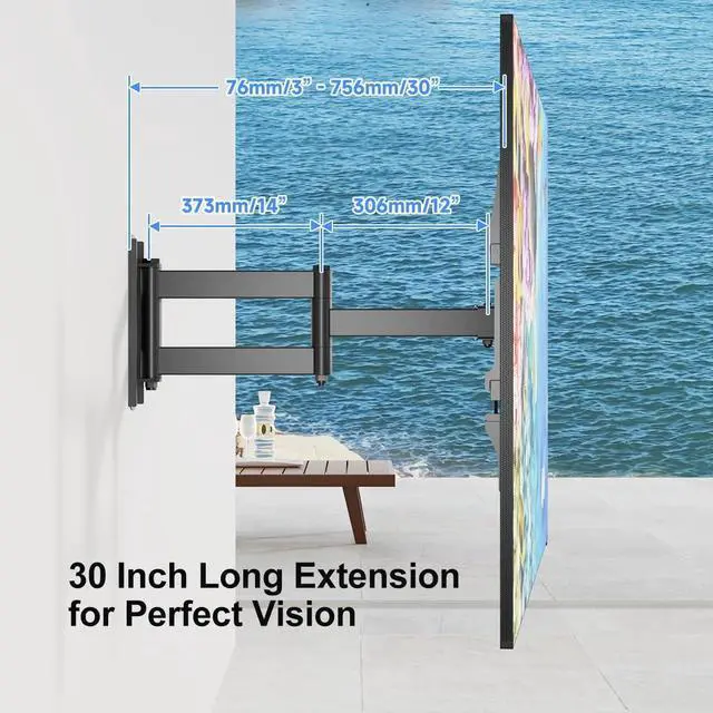 This long extension TV wall bracket extends 30" from the wall, allowing you to adjust the viewing position according to your preference. Moreover, it can retract back to just 3" from the wall, saving space and giving your room a clean look. The long extension feature makes it ideal for corner placement, giving you the freedom to watch TV anywhere you want. ^^ Optimal Viewing Angle- This TV wall bracket offers an optimal viewing experience by providing adjustable viewing angles. You can adjust the tilt of the TV up to +3 and down to -12, reducing the discomfort caused by TV glare.