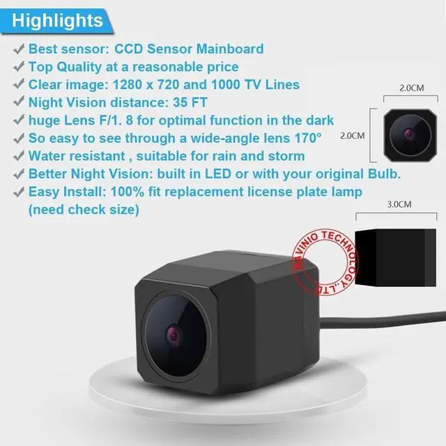 Note: This car rear view camera does not have distance guide lines by defaultWhite jumper wire: Switch for distance guide lines (No/Yes)If you need the distance guide line, please cut the white wire near the camera.