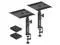 Set of 2 desktop speaker stands with a pair of isolation pads. Isolation pads can withstand up to 24 lbs without deforming, size is 7.5" x 9.5" x 1.6". ^^ Solution to Place Against the wallTwo types of installations are allowed. When you attach the tube to the hole at the edge of the top plate, the desktop speaker stand can be installed against the wall without the need to leave space between the wall and the desk, greatly improving practicality. ^^ More Space SavingThis studio monitor stand only takes up 32.5 cm of surface to clamp on your desktop, saving even more desk space.