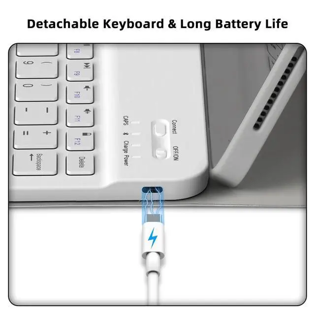 NOTE: Not compatible with any other devices. ^^ 360 Rotating BETTDOW 360 magnetic rotating case can be rotated between landscape and portrait to meet the needs of various scenarios. The exterior of the case is made of fingerprint-resistant, scratch-resistant premium leather. The interior is made of soft, non-slip fabric that keeps the keyboard and iPad secure. ^^ Detachable Keyboard & Long Battery Life BETTDOW 2024 11-inch iPad Pro wireless keyboard supports iOS and Android systems, with a detachable keyboard and case designed to fit different uses and environments. Built-in premium Li-ion battery with energy saving mode, 3 hours full charge, standby up to 30 days, work for at least 30 hours. ^^ Built-in Apple Pencil holderThe built-in pencil holder provides a slot for your stylus. You can slide your Apple Pencil into the holder so it won't get lost. The slot stays above the iPad for quick stylus removal when inspiration strikes, very convenient.
