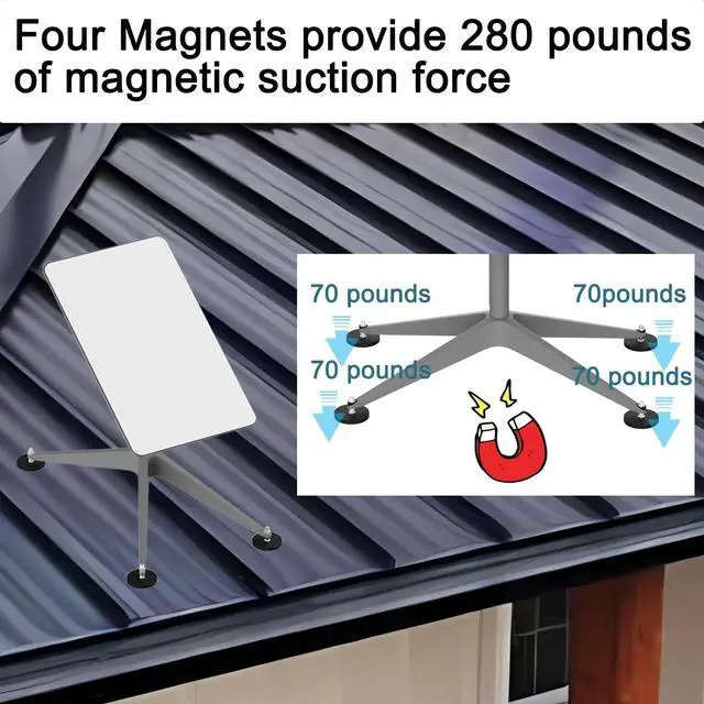 ^^ Strong magnetic force: Each strong neodymium magnet has a pulling force of 70 pounds. Four magnets simultaneously fix the starlink bracket, providing a vertical pulling force of 280 pounds, making the starlink dish more stable on iron surfaces.