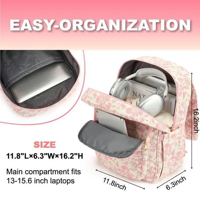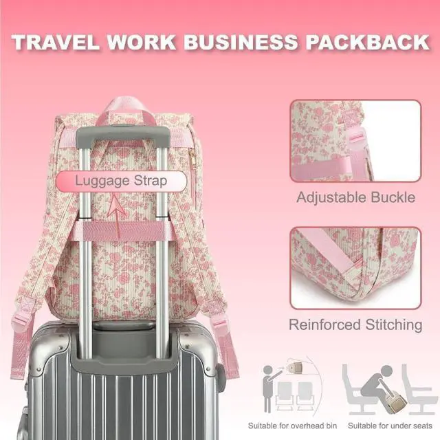 Premium Material: High-quality corduroy laptop backpack fabric is wear-resistant and skin-friendly, soft in texture and not easy to deform. Whether used as a nurse bag, teacher bag or travel bag, it meets needs of different scenes, balancing comfort and practicality. ^^ Luggage Strap Compatibility & Airline-Approved Size: Equipped with a luggage strap for attaching to suitcases and freeing hands, the 11.8"L 6.3"W 16.2"H size meets airline approval. This corduroy laptop backpack makes travel storage more convenient and efficient.