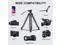The telescoping legs feature dual-stage extension, combining with the tripod's three height settings to provide six total height adjustments. Paired with the ground extender, it achieves a minimum height of 18.5 inches (47 cm) for low-angle shooting. When folded, the legs measure just 33.5 inches (85 cm) and come with a carrying case for easy transport. ^^ [Wide Compatibility and Convenient Operation]The tripod head features 1/4-inch and 3/8-inch threaded interfaces, easily accommodating various photography equipment including cameras, camcorders, and other compatible devices. The side-release quick-release design allows one-touch release of the safety lock for rapid camera mounting and dismounting.