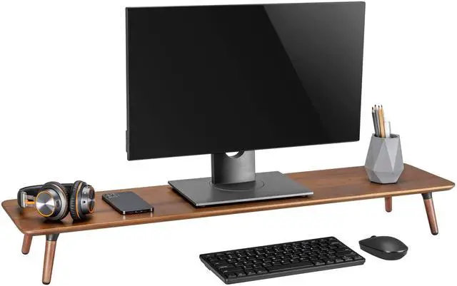 Size: 39.37 9.45 4.72 inches ^^ Material: Made from premium Mahogany. ^^ Desktop Shelf: Includes a sleek shelf. ^^ Easy to Assemble: Our instructions and guide makes it really easy to put together. ^^ Designed by IVE Design in Vancouver.