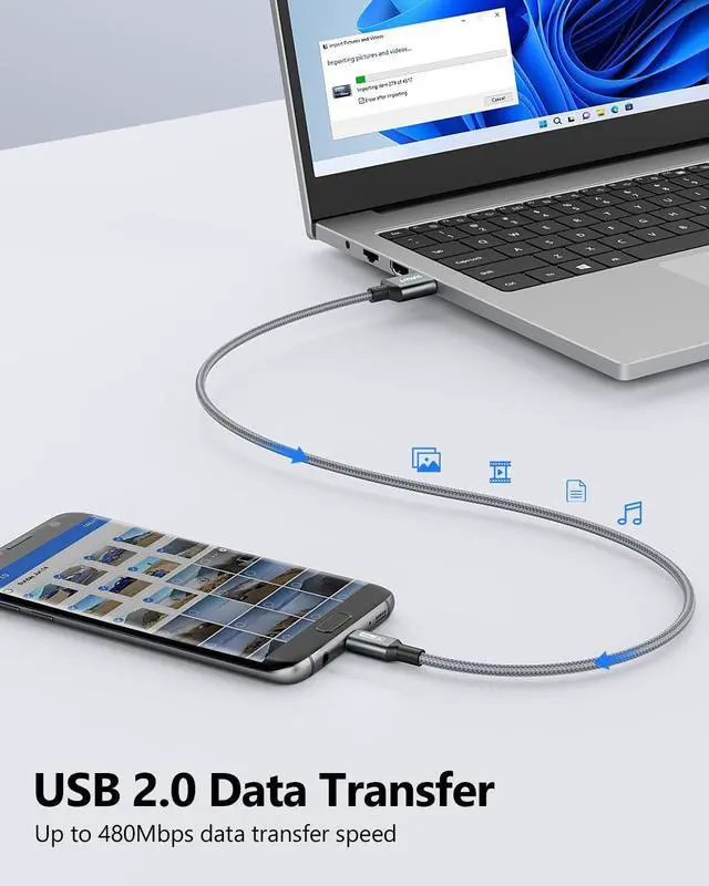 Fast Charge & Data Sync: This 0.5 m/ 1.5 ft micro usb cable support fast charging & usb 2.0 data sync, transferring data speed can up to 480 Mbps.