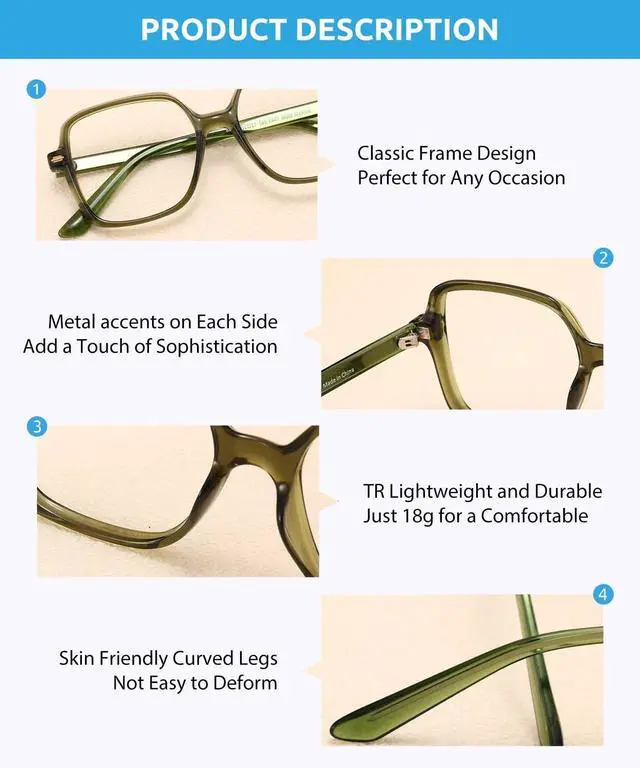 Package Includes: 1* Retro blue light reading glasses, 1* protective bag, 1* glasses case. If you have any concerns about our product, please don't hesitate to contact us