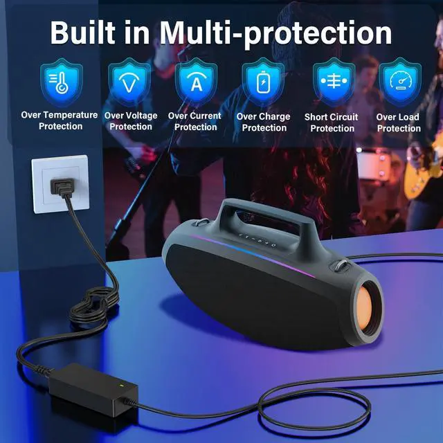 Security Protections: The power supply cord for Skullcandy Boombox Speaker has been certificated by CE/FCC after 10000 times of charging and aging tests, which is built in protection design of over current, temperature and load protection ^^