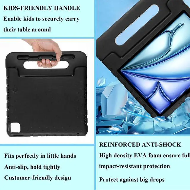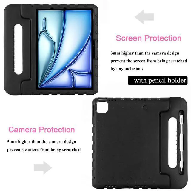 UUcovers Kids Case for iPad Pro 11 inch M5/M4 (2025/2024) with Pencil Holder/Convertible Handle Stand Shockproof Slim Lightweight Cute Soft EVA Heavy Duty Rugged Kickstand Cover for Children, Black