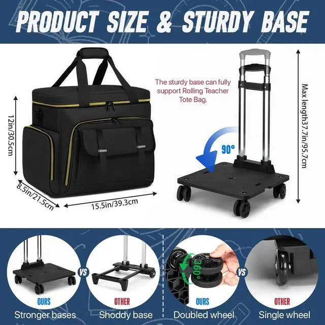 Upgraded durable function: The teacher tote bag uses double-layer 360-degree rotating rollers for more stable and smooth rolling. The complete base plate provides better support, and the increased Velcro at the bottom ensures better fixation ^^