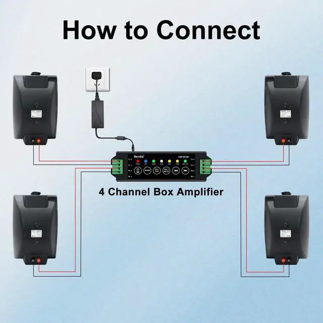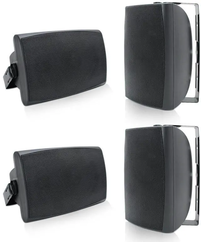 Full-Range SpeakersThe high powered full range indoor outdoor speakers wired waterproof has a maximum power output of 800 watt (200 Watt Each) peak power can filling open spaces with complete audio coverage. ^^ Waterproof&Weather ResistantOur Outdoor speakers are made with heavy-duty ABS construction and are IP66 grade waterproof making it safe to use in rainy day, snowy day sunny days and other extreme weather. Excellent for use on Patio, Yard, Poolside, Livingroom. ^^ Bluetooth Speaker System & Multifunction AmplifierFour passive speakers with an 4 channel amplifier wired for connection deliver high-quality sound enjoyment.