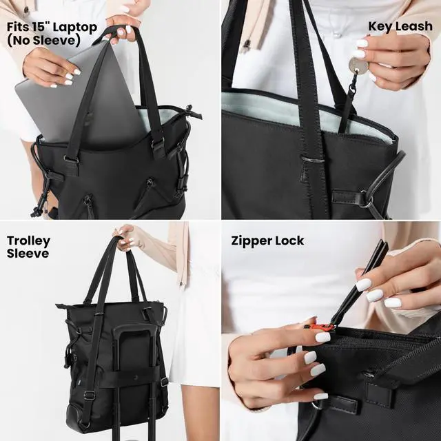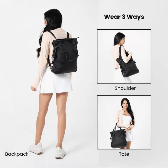Features polyester construction with vegan leather trim and detailing. The Tempest AT repurposes 22 plastic bottles. ^^ ANTI THEFT FEATURES - This bag is equipped with RFID protection, one exterior zipper lock tunnel, a clip lock for the main compartment opening, and a chair loop lock system. The bottom of the bag is lined with anti-slash fabric and the main strap is also slash proof. ^^ COMFORT and FIT - The Tempest AT is designed for functionality and allows you to wear this bag as a tote or a backpack. We offer our bags in a variety of expressive colors so that you can express your style whether you use your bag for vacation, work, travel, business, shopping, or other daily activities.