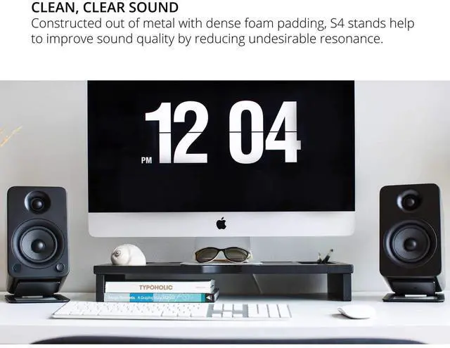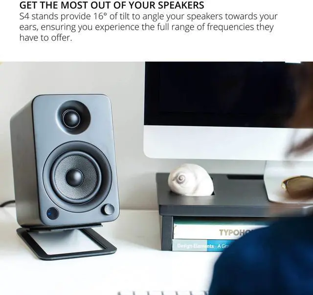 16 ANGLE - Get the most out of your speakers by tilting them toward your ears, ensuring you never miss out on those higher frequencies. ^^ MOUNTING HOLE - Secure YU4 or other compatible speakers in place with the provided 1/4"-20 screw. ^^ Foam padding - Maintain stability and reduce undesirable resonance. ^^ MINIMALISTIC DESIGN - S4's low-profile design keeps your desktop looking clean. ^^ SOLID METAL CONSTRUCTION - Premium build quality and ultra-stable design to keep speakers in place.