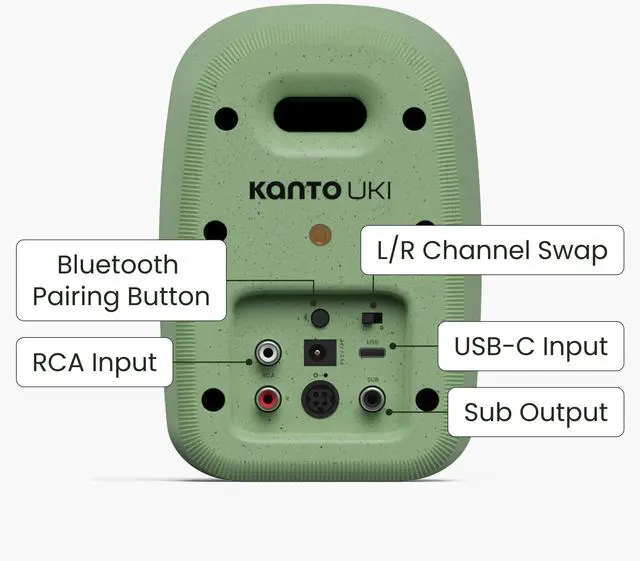 Kanto UKI 100 W Active Desktop Computer Speakers with Bluetooth and USB-C ^^ Intelligent Sub Integration ^^ Headphone Out ^^ Pair ^^ Sage