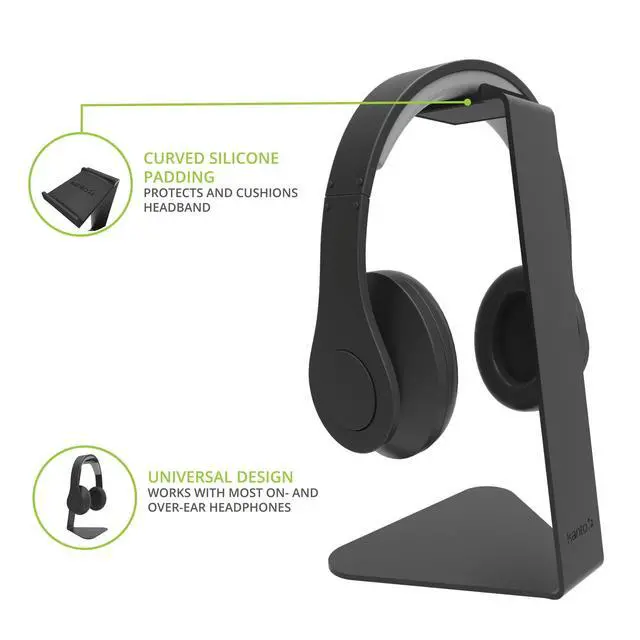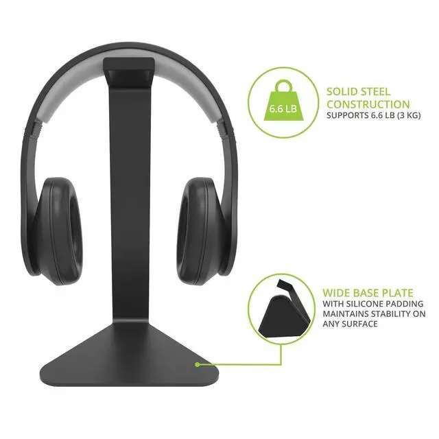 SLEEK APPEARANCE - The H1's slim steel frame takes up minimal space while ensuring ample stability. Place it anywhere on your desk to keep your headphones within arm's reach. ^^ A PERFECT FIT - H1 measures 10" tall to accommodate most on-ear headphone sizes. Its contoured silicone cradle comfortably fits headbands up to 2" wide while preventing impressions being left on softer materials. ^^ HIGH STABILITY - Constructed out of steel with a 6" wide base, the H1 is designed to prevent tipping while holding up to 6.6 pounds. Silicone padding on the bottom of the base also helps to keep the stand firmly in place.