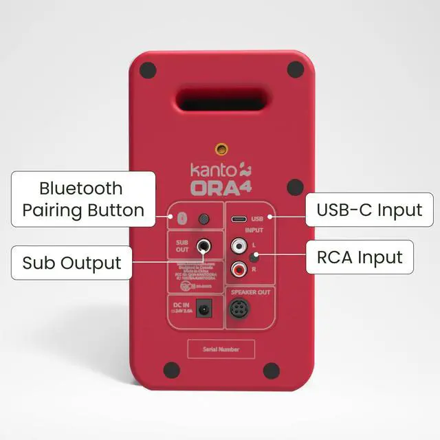^^ MODERN CONNECTIONS To cover your digital and analog needs, ORA4 offers three inputs - USB-C for flawless sound from your PC or Mac, Bluetooth 5.0 for pairing with your phone or smart home device, and RCA for your analog gear. An endless amount of audio sources work with ORA4 from the past, present, or future. ^^ TIGHT SUB INTEGRATION You dont have to sacrifice fidelity for low-end grunt. When a subwoofer is connected, a crossover network activates automatically, allowing ORA4 to concentrate on vocals and high frequencies. By offloading bass, ORA4 can play louder with less distortion improving overall sound quality.