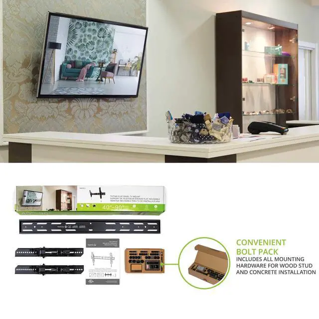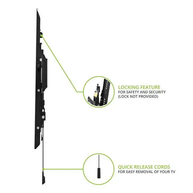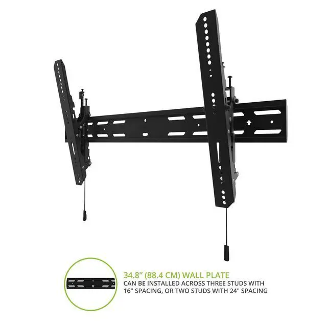 12 OF TILT - Tilt your TV up to 12 forward to reduce glare and improve line-of-sight with the screen ^^ LOW PROFILE DESIGN - Measuring 1.4 thick, the PT400 allows your TV to sit remarkably close to the wall ^^ EXTRA WIDE WALL PLATE - The 35 wide wall plate can be installed across three studs with 16 spacing, or two studs with 24 spacing ^^ POST-INSTALLATION LEVELING - Easily level your TV with two adjustable screws ^^ ADDED SECURITY - Torx screws and a locking feature prevent theft (lock not included)