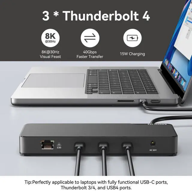 MOKiN Thunderbolt 4 Dock with 85W Charging, Laptops Docking Station Dual Monitor for MacBook, 3X TB4 Ports 40Gbp/s, 2.5GbE Ethernet,USB A 3.1,Audio, SD, Compatible for Thunderbolt 3/4 Mac/PC