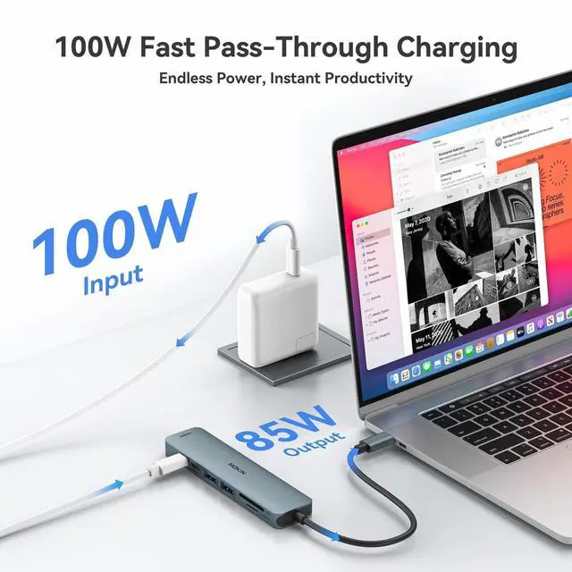 USB C Hub: USB C to HDMI Adapter equipped with 1*4K@60Hz HDMI port, 2*USB 3.0 ports, 1*USB C Data port, 1*100W PD, Micro SD/TF card reader slot, Works well with most USB-C devices, like MacBook Pro, MacBook Air, MacBook M1, M2, iMac, iPad Pro, iPhone 15 Pro/Pro Max, Dell XPS Surface, HP and other USB-C port devices ^^ Enjoy Crystal-Clear 4K@60Hz