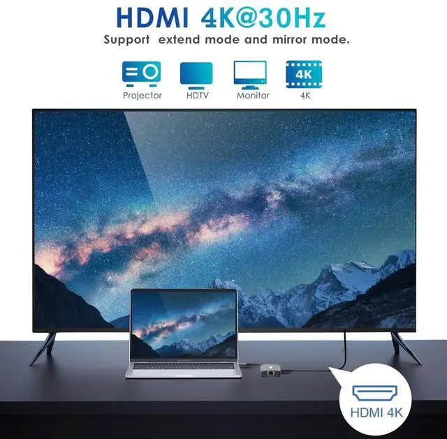 USB-C Hub: macbook pro adapter with HDMI make it possible for you to connect to a display screen or TV for 4K video output. With three USB Port, you can charge devices, connect external hard drive. There is also a 1000Mbps Gigabit RJ45 ethernet port, TF and micro SD card readers, and two USB-C female PD Charging port. All hub ports can work simultaneously, small yet mighty. ^^ 4K video USB-C to