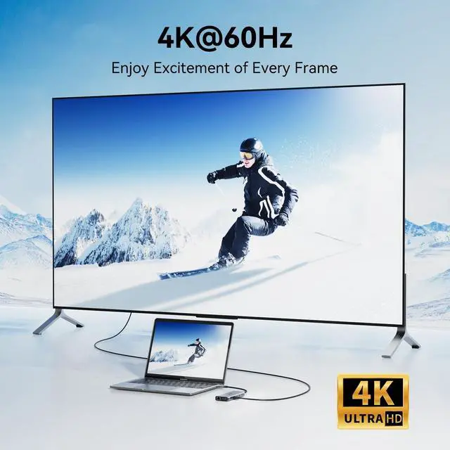 Ultra HD: This USB C hub docking station will help you easily achieve dual-monitor and triple-monitor display to make your work/life more efficient; Single use HDMI up to 4K 60Hz under DP 1.4 source; When connecting dual hdmi at the same time, the resolution support up to 4K@60hz and 4K@30hz; When triple display under DP 1.4 source. resolution support up to 1080P when external 3 monitors are connected; (Note: Due to OS limitation, MacOs laptops only support SST mode, so all external monitor screens are the same) ^^ 10Gbp/s