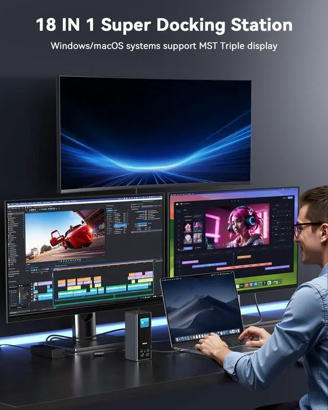 Windows: Boost your multitasking with triple 4K displays on macOS, extending up to 3 monitors in stunning clarity, All HDMI or DP ports require the installation of SM77x drivers, and do not require the computer to support video output (at least data function is required, pure charging ports are not acceptable). macOS requires manual download of drivers, while Windows computers with Windows 10 or above systems can be directly updated and used in the system.