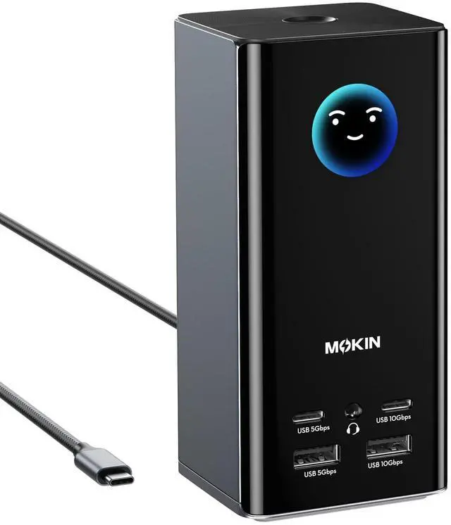 ^^ [10Gbps HyperSpeed Dock]: 2X 10Gbps USB-C/A + 2x USB-C/A (5G/480Mbps) + Gigabit Ethernet & Hi-Fi Audio. Multi-speed matrix supports gaming rigs & pro workflows. MOKiN docking station ensures a fast and secure transfer experience ^^ [Smart LED Digital Display &