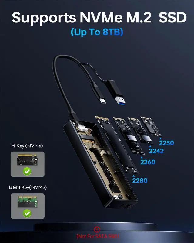 Just use a retrieve card pin to open it easily. MOKiN SSD enclosure allows quick and easy installation of your M. 2 NVMe 2230/2242/2260/2280 SSDs. (not for SATA) The compact size combined with the high-speed connectivity, make it an excellent choice for those who need fast and reliable storage in a portable package ^^ Large CompatibilityNVMe enclosure comes with USB4 cable. SSD enclosure compatible with Thunderbolt 3/4/USB4/USB 3.2 / 3.1 / 3.0 / 2.0, Our 40Gbps NVMe enclosure supports M KEY and B&M KEY SSD with size 2230/2242/2260/2280. Supports S. M.