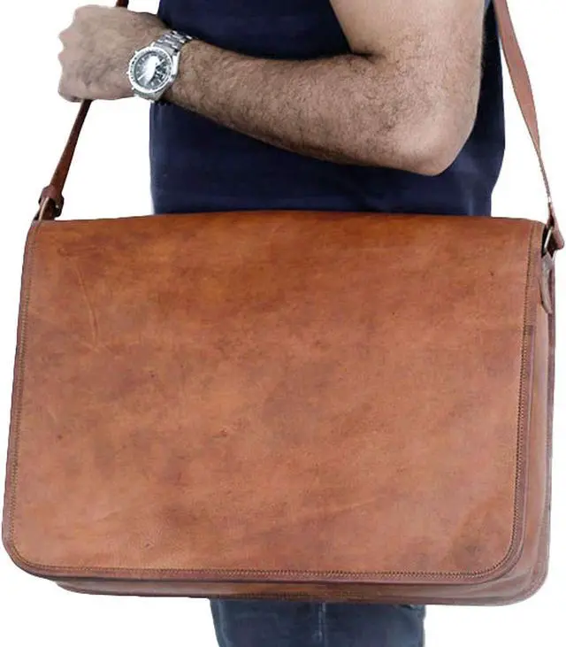 Komal's Passion Leather Vintage Mens 16 Inch Leather Laptop Messenger Satchel Men's Bag
