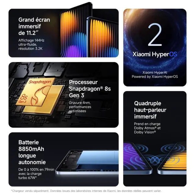 features quad speakers with Dolby Atmos support, and also supports 200% volume boost for an even more immersive sound experience. new AI capabilities allowing you to handle diverse office tasks seamlessly, including searching, generating texts and images, and conducting meetings. With most advanced proprietary AIGC and cloud computing technology, turn your sketches into masterpieces in seconds. HyperOS 2 introduces brand-new core technologies and intelligent computing power scheduling tailored for seamless multi-tasking on tablets. It accurately allocates resources based on the prioritisation of window visibility, for an even smoother experience.