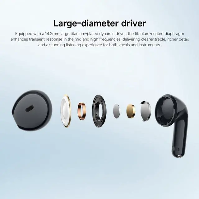 IMMERSIVE 14.2MM TITANIUM DRIVERS: Experience powerful and detailed sound with large 14.2mm dynamic drivers equipped with a titanium diaphragm. They deliver enhanced bass and clear highs, bringing your music and podcasts to life with exceptional audio clarity.