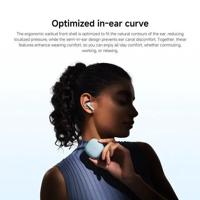 COMFORTABLE SEMI-IN-EAR & OPEN-FIT DESIGN: Designed for all-day comfort, the ergonomic semi-in-ear (open-fit) design sits securely and gently in your ears without the pressure of silicone tips. Its perfect for extended listening, workouts, and taking calls without feeling plugged up.
