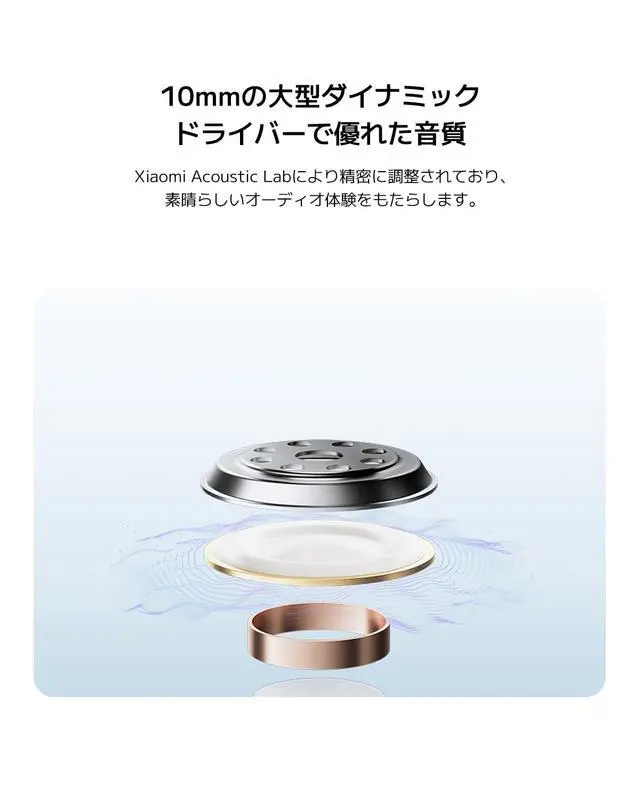10mm large dynamic driver: The 10mm large dynamic driver has been finely tuned by Xiaomi Acoustic Lab to upgrade performance and bring you a fantastic auditory experience.