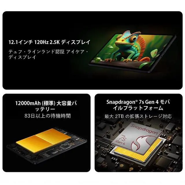 Poco Pad M1 Play to the max 12.1" 120Hz 2.5K displayTUV Rheinland certified eye-care displayMassive 12000mAh (typ) batterySnapdragon 7s Gen 4 Mobile PlatformUp to 2TB of expandable storageQuad speakers for immersive stereo soundDolby Atmos speakers with 300% volume boost5Flagship visual display designed for entertainment 12.1" 2.5K crystal-clear display1Centered on an immersive 12.1 -inch 2.5K crystal-clear display, the POCO Pad M1 delivers larger-than-life visuals, sharp details and vivid images with support for over 1.07 billion colors and Dolby Vision. POCO Pad M1 screen size is about 12.1 inches when measured diagonally. Viewable area is smaller due to the curved corners.