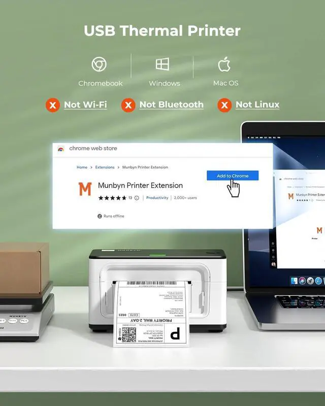 • [One Minute to Set up, Money and Time Saver] We made it - Chrome print now! 203dpi thermal label printer RealWriter 941 is easy to work with Windows, macOS, and Chrome OS. Use the MUNBYN Printer Extension on Chrome Store to connect with the printer and get it to print. MUNBYN shipping label printer installs and works like a regular thermal printer that can create customized labels directly from any application.