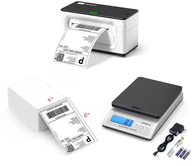 MUNBYN RealWriter 941 Shipping Label Printer 4x6 Label Printer for Shipping Packages+Thermal Direct Shipping Label (Pack of 500 4x6 Fan-Fold Labels)+Shipping Scale, Accurate 66lb/0.1oz Postal Scale