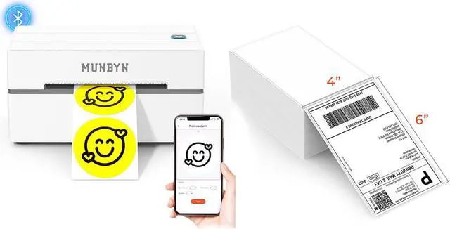 Bluetooth for Mobile Phone: MUNBYN RealWriter 130 Bluetooth label printer, supports Bluetooth connection for iOS and Android systems, and prints labels anytime, anywhere. Download the "MUNBYN print" app for quick and easy label printing.