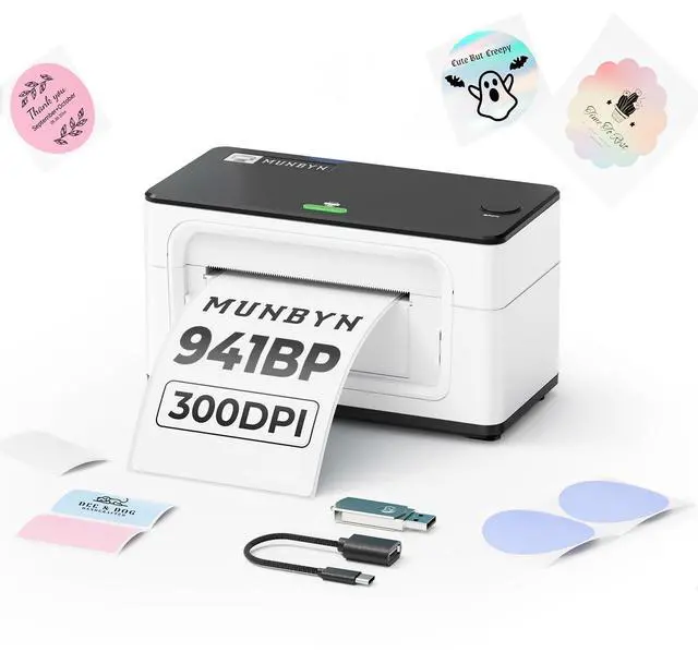 MUNBYN Bluetooth Thermal Label Printer 941B, Wireless 300DPI 4x6 Shipping Label Printer for Small Business, Compatible with Windows, Mac, iPhone, Android, PC, Ebay, Amazon, Shopify, Etsy, USPS (White)