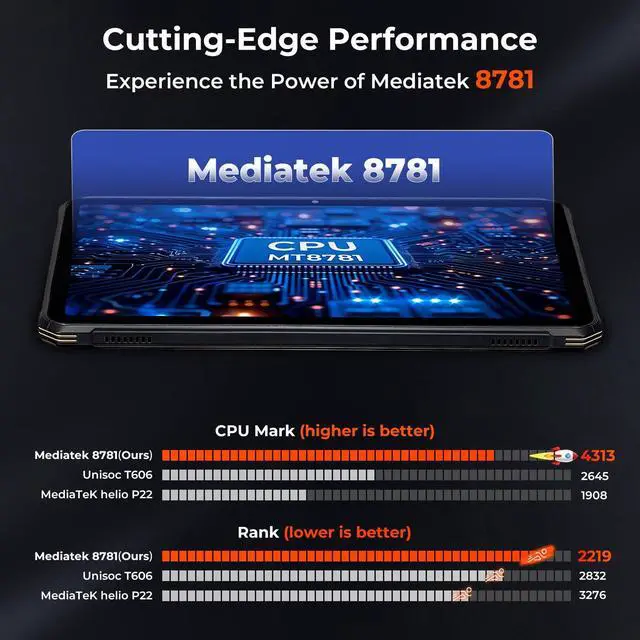 [Top Performance]: Powered by Android 14, the MUNBYN rugged tablet ILT03 boasts cutting-edge features and the latest security updates, easily handling over 1000 apps. The Mediatek 8781 CPU offers at least double the performance of other market CPUs. Whether you're running inventory management software, multitasking, gaming, or watching videos, the MUNBYN rugged tablet ensures a seamless and highly responsive experience.