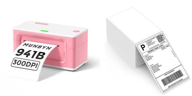 MUNBYN Bluetooth Thermal Label Printer 941B+Thermal Direct Shipping Label (Pack of 500 4x6 Fan-Fold Labels)