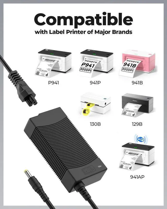 Widely Applicable: 24V 2.0A Power adapters are compatible with MUNBYN P941, P130, 130B, 941P, 941B, 129B, 129S thermal label printer, and any label shipping printer. You can pick up when you need an adapter ^^ Easy to
