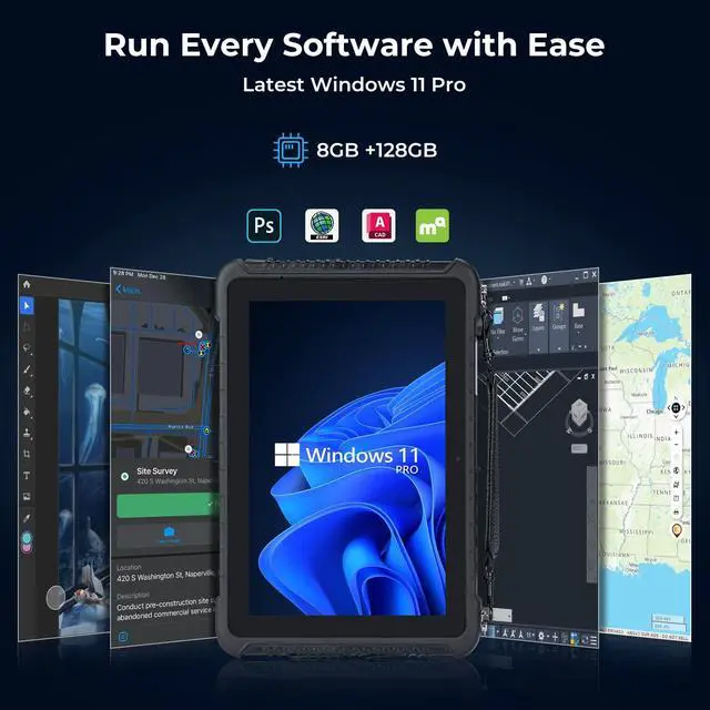 If you need assistance, please contact us for detailed setup methods. ^^ [Powerful Protective Performance] The MUNBYN heavy-duty tablet has been certified with MIL-STD-810G, ensuring that the work tablet can withstand strong impacts without damage during drop tests from a height of 4 feet. Additionally, it possesses excellent waterproof capabilities, as it remains leak-free even when subjected to powerful water jets. Whether in construction sites, warehouses, or harsh outdoor environments, this industrial tablet enables efficient task accomplishment. ^^ [High-Precision Navigation & Positioning] Utilizing U-Blox NEO-7 GPS technology allows for integration with geographic information systems software such as Esri ArcGIS, Google Earth Pro, Autodesk AutoCAD Map 3D, and QGIS.