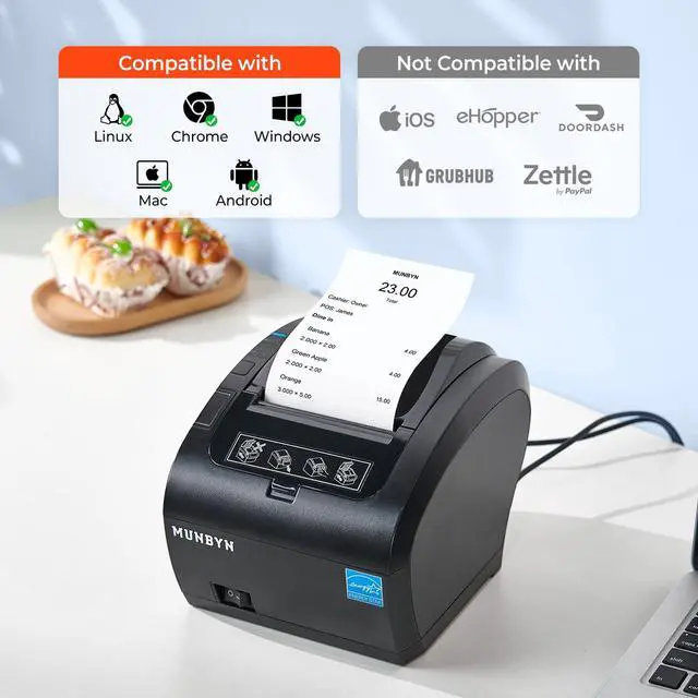 Devices: NO iOS, NO iPad and iPhone. NO Compatible Doordash support, No WIFI! ^^ [Compatible with Android, Windows, Mac, Linux, ChromeOS Systems & Cash Drawer] The high compatibility pos printer, with 3-ports, makes your business more accessible and efficient. Careful, No Doordash. NO Grubhub. NO Vagaro, NO iOS ^^ Ensure your device and operating system are compatible with this printer to avoid any inconvenience. For more on compatibility issues check out the compatibility images ^^