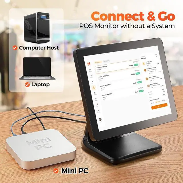 [Connect & Go] Designed for seamless integration, the MUNBYN touch screen monitor effortlessly connects to a computer host, laptop, or mini PC, ensuring you can incorporate it into your existing setup with ease. Note that this POS screen does not come with a built-in operating system, giving you the flexibility to pair it with your own device. ^^ [Widely Compatible] The MUNBYN pos monitor touchscreen boasts extensive compatibility, supporting a range of Windows operating systems including Windows 11, Windows 10, Windows 7, and Windows XP. If you are using Windows 7 or XP, please contact us to obtain the upgrade tool APP for firmware upgrade before using it.