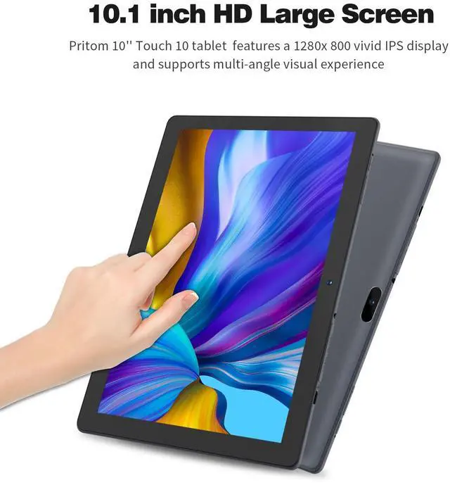High Performance Tablet Android 13: PRITOM TOUCH10 tablet upgraded comes with 4GB RAM(+2GB Virtual), 64 GB ROM, the stable Android 13 go OS and energy-saving Quad-core Processor enables quicker app launch, smoother videos, you can enjoy better overall performance experience. In addition, it includes a Micro SD card slot (can be added a expanded 512 GB TF Card Max, NOT included), making it easy to store Pictures videos, files etc