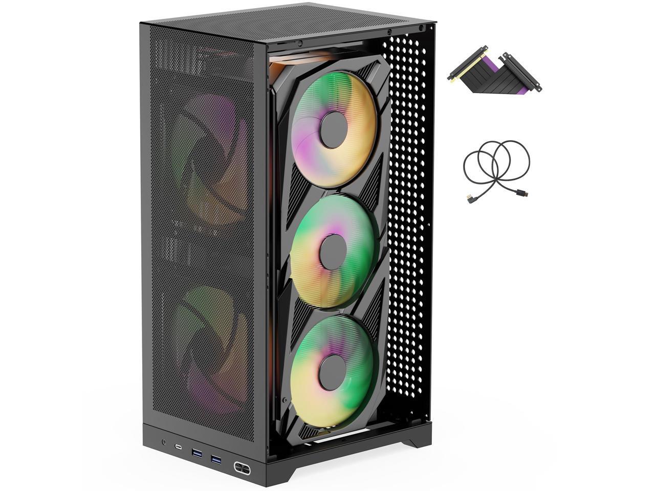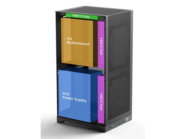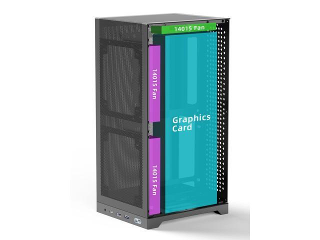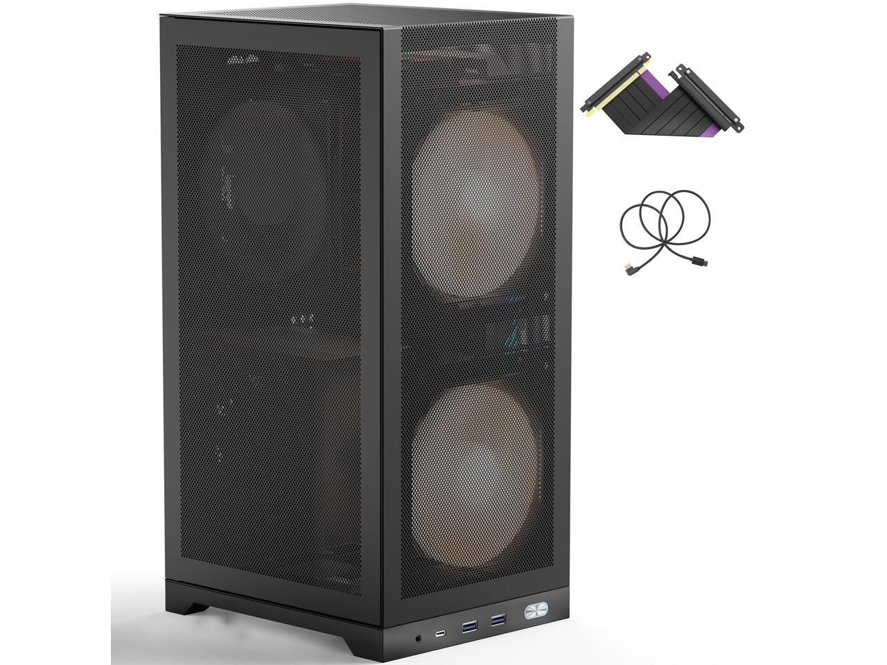 - [(ULTRA-COMPACT VERTICAL DESIGN)] : Space-Saving Compact 12.1L Vertical ITX Chassis (7.8" x 6.65" x 14.41"/198 x 169 x 363mm) maximizes desk space while housing TRIPLE-SLOT GPUs up to 13.78" (350mm), such as RTX 4060/4080 GPU. Perfect for gamers, creators, and professionals who want desktop-grade power in a portable mini-ITX build - weighs just 5.5lbs (2.5kg), 50% lighter than bulky traditional towers.