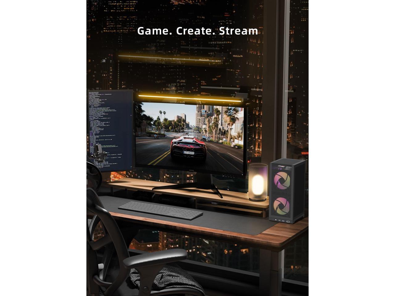 - [(ADVANCED MESH COOLING SYSTEM)] : Triple 140x15mm ultra-slim fans and full-perforation steel mesh side panels create optimized airflow (side intake - top exhaust) to dissipate GPU/CPU heat fast. High-density mesh blocks dust without sacrificing airflow - ideal for long gaming sessions or 3D rendering.