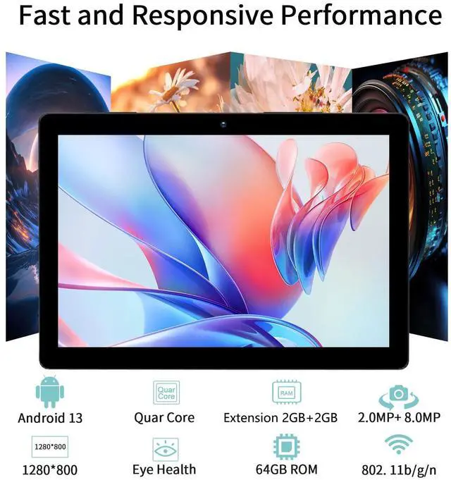 [HIGH PERFORMANCE ANDROID TABLET ] - Pritom Touch10 tablets comes with 64 GB storage, 4 GB RAM(+2 GB Extention) the stable Android 13 system and energy-saving Quad-core Processor enables quicker app launch, smoother videos, you can enjoy better overall performance experience. In addition, it includes a Micro SD card slot (can be added a expanded 512 GB TF Card Max, NOT included), 64 GB is more room and easier to store Pictures videos, files etc.