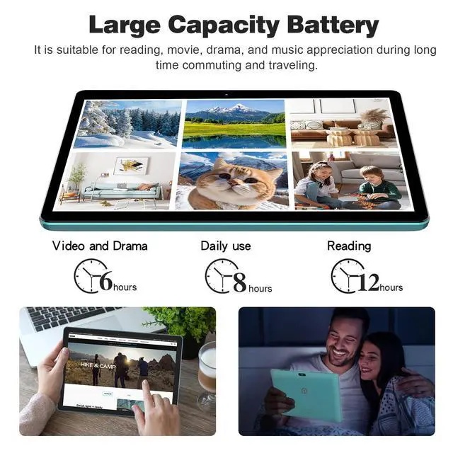 The large battery and low-power CPU enhance your experience and allow you to enjoy up to 8 hours of mixed reading, watching TV shows, surfing the web, playing light games and more. It is a really good companion for your leisure and entertainment. Large IPS Touchscreen will be a plus ^^ [Low bloatware & Dual Cameras] - With Front 2.0 MP & Rear 8.0 MP camera, which would bring your photos and videos to life. TOUCH 10 tablet rivals most of the 10 inch tablet and it is convenient for taking photos, capturing and sharing those special moments with your friends and family.